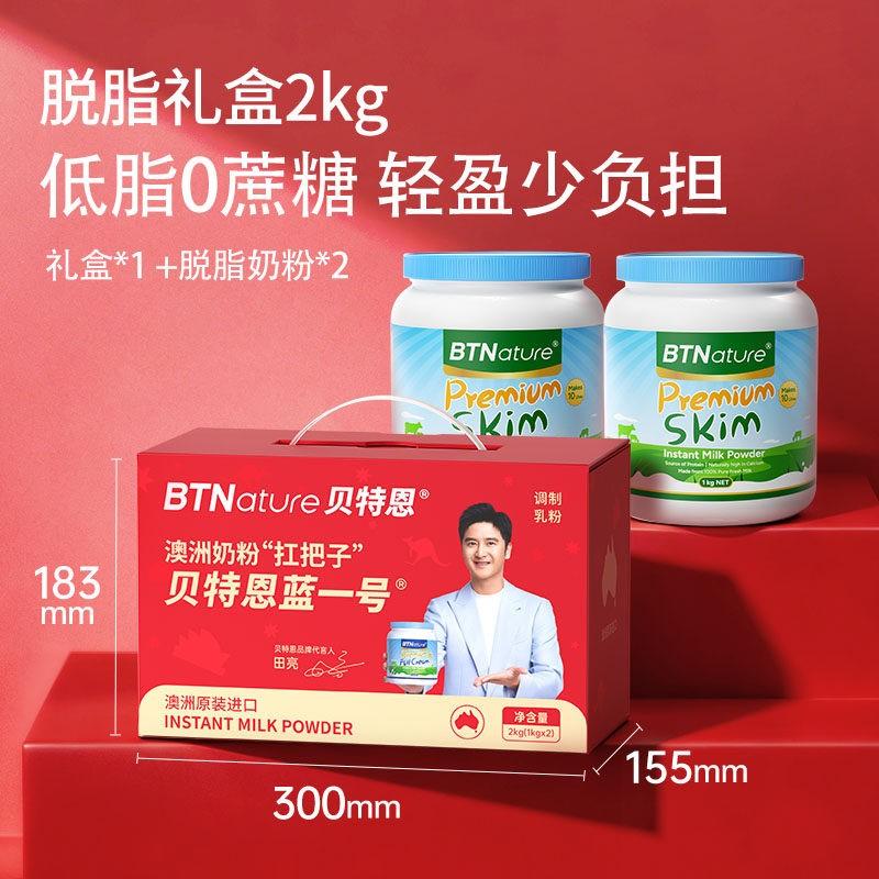 【限定新年礼盒装】BTNature贝特恩蓝一号成人脱脂奶粉1kg/罐 2罐装