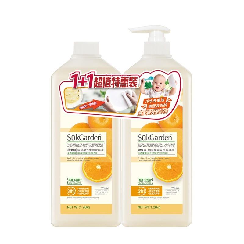 SukGarden蔬果园橘彩星光果蔬餐具净1+1特惠装(1.28kg*2)