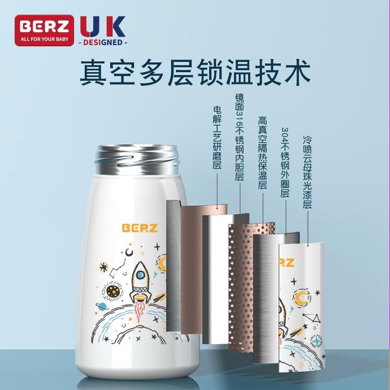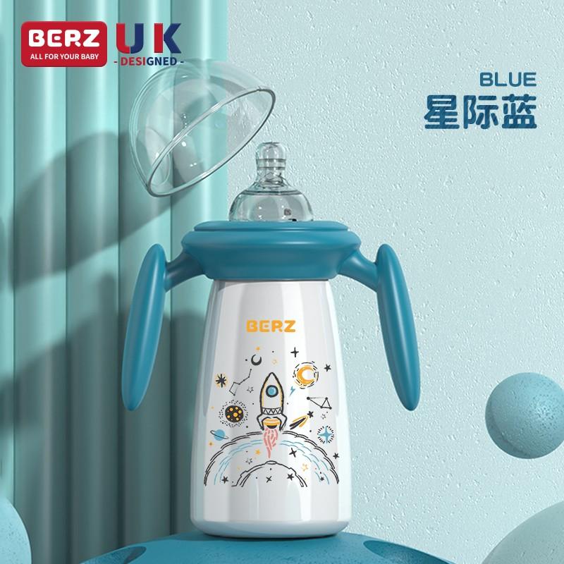 英国BERZ贝氏316不锈钢保温奶瓶260ml 蓝色